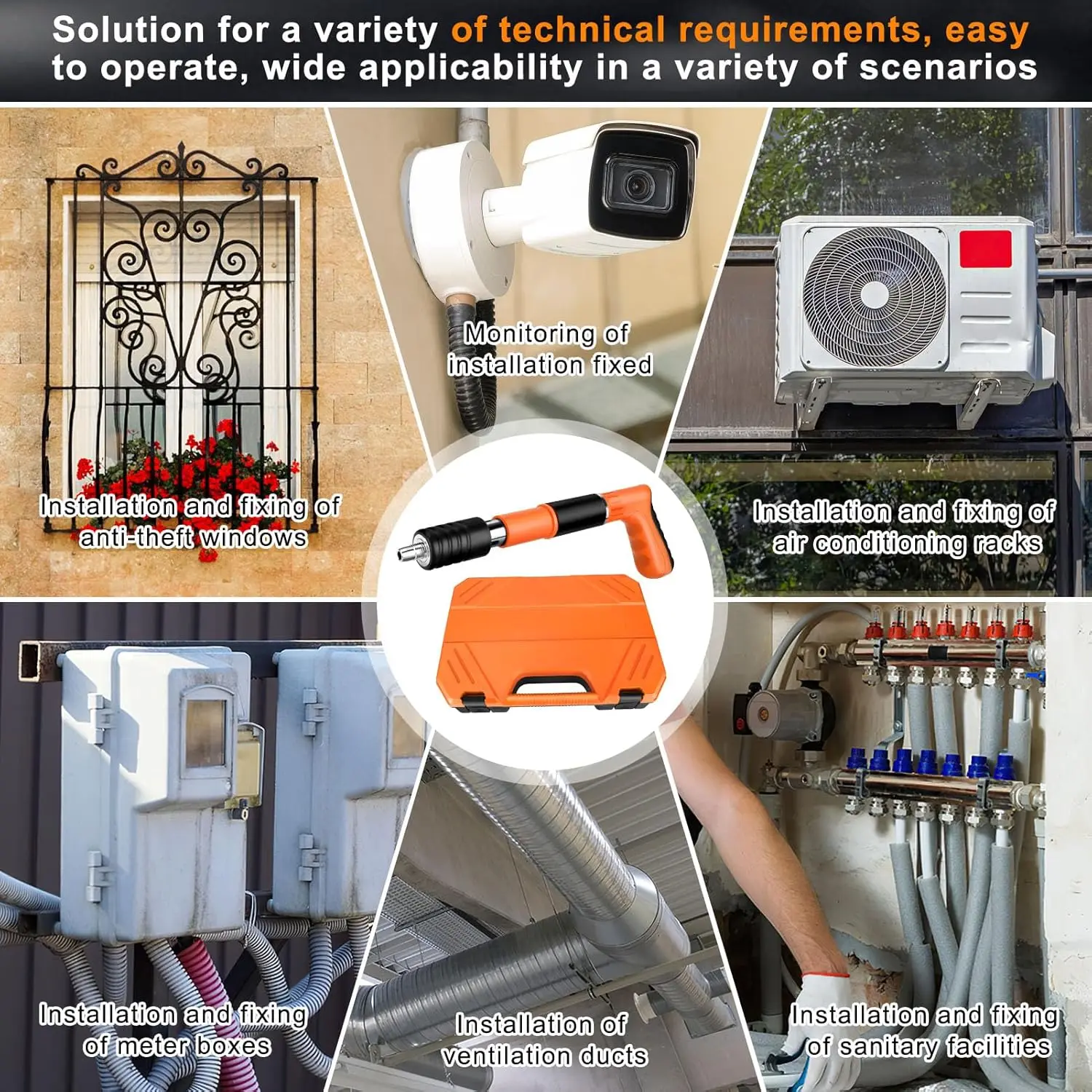 Projetada para alta eficiência, a pistola de pregos penetra placas de aço de 3 mm em apenas 0,1 segundos, tornando-a perfeita para aplicações pesadas como montagem de unidades de ar condicionado, estruturas ou caixas elétricas.