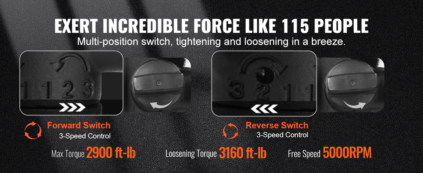 Rotation Control: Combined forward/reverse and power management switch, 6-stage settings to adjust speed and torque to adapt to different applications.